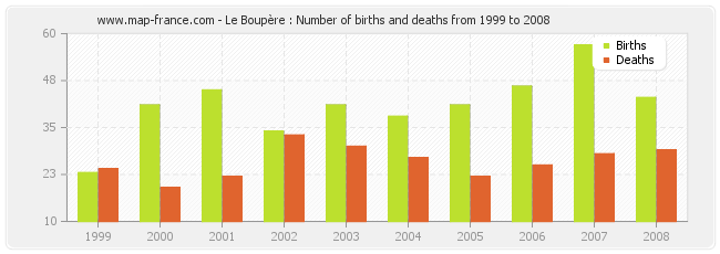 - Le Boupère in 2008 : 43 births and 29 deaths