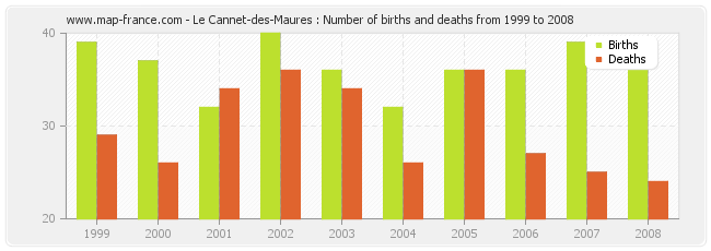 - Le Cannet-des-Maures in 2008 : 36 births and 24 deaths