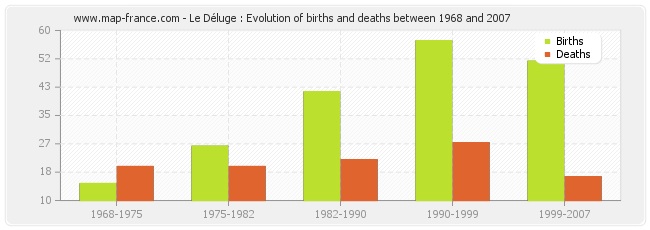 Le Déluge : evolution of births and deaths from 1968 to 2007
