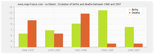 Le Désert : evolution of births and deaths from 1968 to 2007