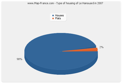 The accommodation of Le Hanouard in 2007 consisted of 102 houses and 2 flats.