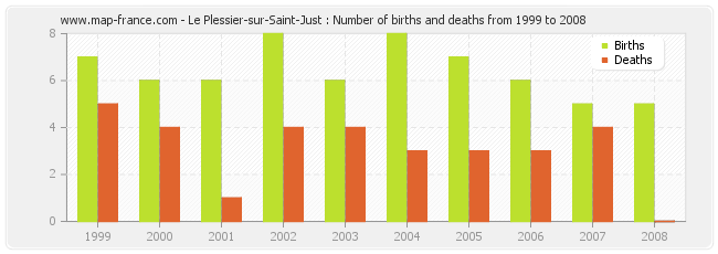 Le Plessier-sur-Saint-Just : births and deaths from 1999 to 2008
