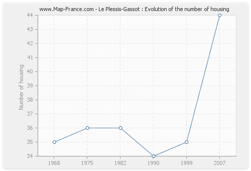 The number of housing of Le Plessis-Gassot was 44 in 2007, 35 in 1999, 34 in 1990, 36 in 1982, 36 in 1975 and 35 in 1968.
