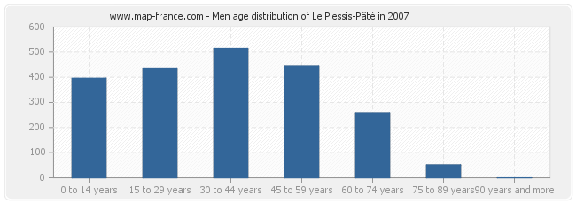 Men population distribution of Le Plessis-Pâté by age in 2007 :
