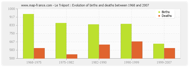 Le Tréport : evolution of births and deaths from 1968 to 2007