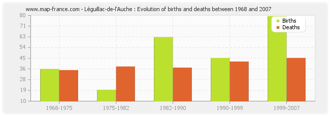- Léguillac-de-l'Auche in 2007 : 10 births and 5 deaths