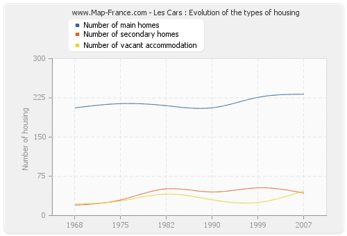 The number of housing of Les Cars was 323 in 2007, 304 in 1999, 281 in 1990, 302 in 1982, 272 in 1975 and 248 in 1968.