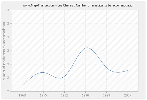 - Number of inhabitants per housing of Les Chères in 2007 : 2,48