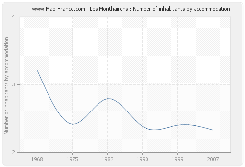 The population of Les Monthairons was 366 inhabitants in 2007, 387 inhabitants in 1999, 367 inhabitants in 1990, 408 inhabitants in 1982, 360 inhabitants in 1975 and 433 inhabitants in 1968. Meanwhile, the number of housing of Les Monthairons was 157 in 2007, 161 in 1999, 154 in 1990, 146 in 1982, 149 in 1975 and 135 in 1968.