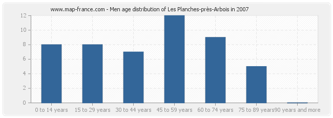 - Les Planches-près-Arbois men inhabitants from 45 to 59 years : 12