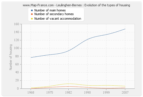 The number of housing of Leulinghen-Bernes was 156 in 2007, 143 in 1999, 133 in 1990, 111 in 1982, 93 in 1975 and 79 in 1968.
