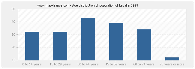 - Population of Leval from 30 to 44 years : 43 inhabitants