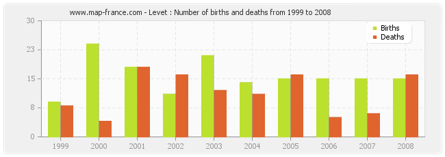 - Population of Levet from 15 to 29 years : 184 inhabitants