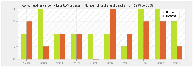 Leyritz-Moncassin : births and deaths from 1999 to 2008
