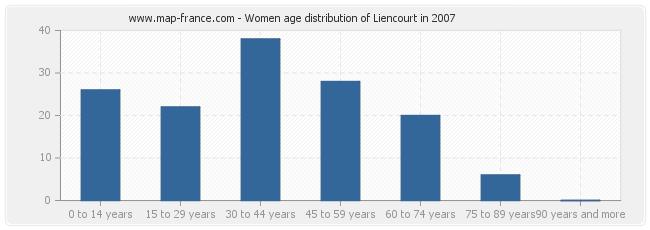 Women population distribution of Liencourt by age in 2007 :