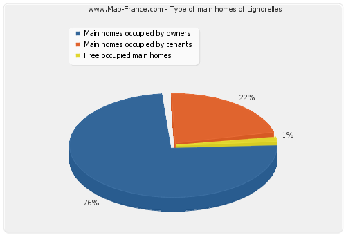 - Number of main homes of Lignorelles occupied by owners : 52 - Number of main homes of Lignorelles occupied by tenants : 15 - Number of main homes of Lignorelles occupied free of charge : 1 |