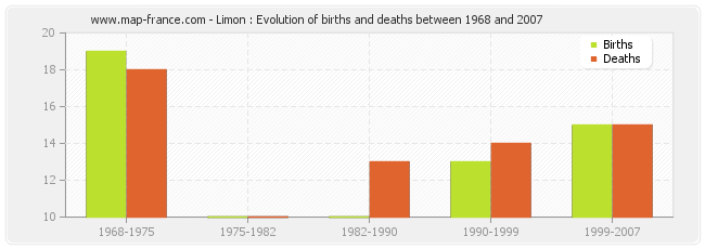 Limon : evolution of births and deaths from 1968 to 2007