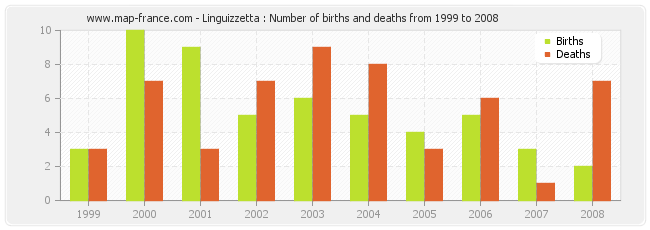 - Linguizzetta in 2008 : 2 births and 7 deaths