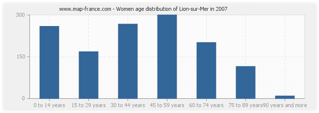 - Lion-sur-Mer women inhabitants from 45 to 59 years : 300