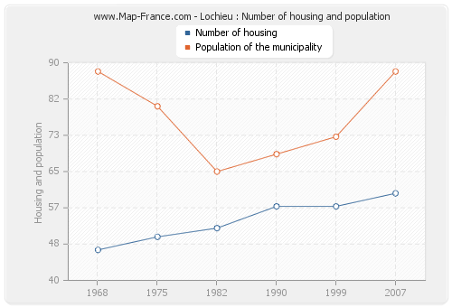 The number of housing of Lochieu was 60 in 2007, 57 in 1999, 57 in 1990, 52 in 1982, 50 in 1975 and 47 in 1968.