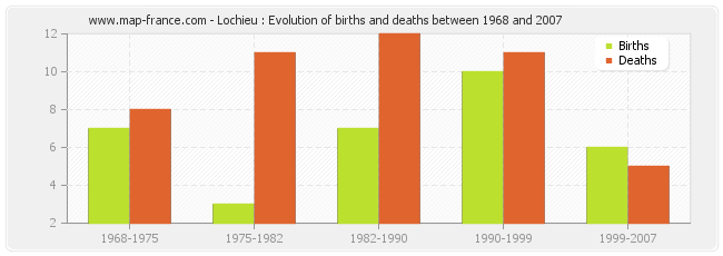 Lochieu : evolution of births and deaths from 1968 to 2007