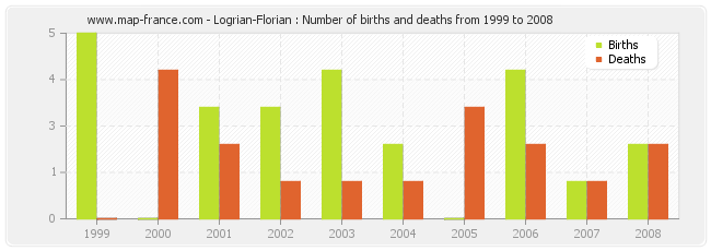 Logrian-Florian : births and deaths from 1999 to 2008