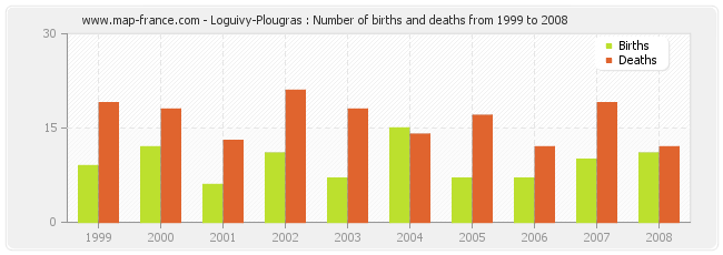 Loguivy-Plougras : births and deaths from 1999 to 2008