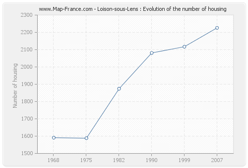 The number of housing of Loison-sous-Lens was 2 226 in 2007, 2 117 in 1999, 2 081 in 1990, 1 874 in 1982, 1 588 in 1975 and 1 591 in 1968.