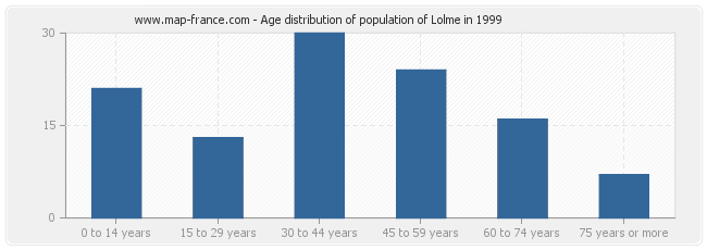 - Population of Lolme from 30 to 44 years : 30 inhabitants