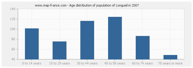 - Population of Longueil from 75 years or more : 48 inhabitants