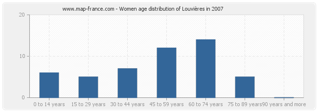 - Population of Louvières from 60 to 74 years : 28 inhabitants