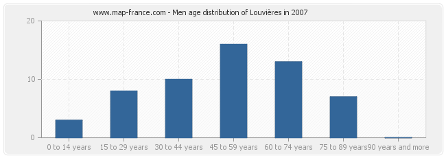 - Population of Louvières from 45 to 59 years : 19 inhabitants