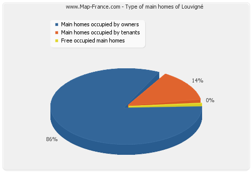 - Number of main homes of Louvigné occupied by owners : 265 - Number of main homes of Louvigné occupied by tenants : 43 - Number of main homes of Louvigné occupied free of charge : 1 |