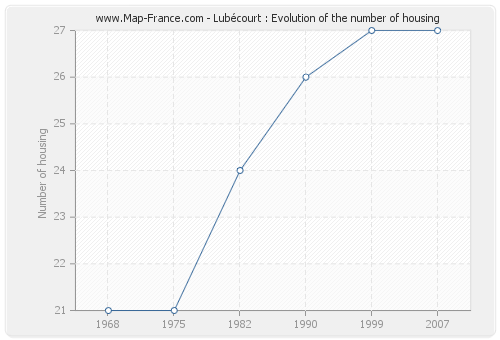 The number of housing of Lubécourt was 27 in 2007, 27 in 1999, 26 in 1990, 24 in 1982, 21 in 1975 and 21 in 1968.