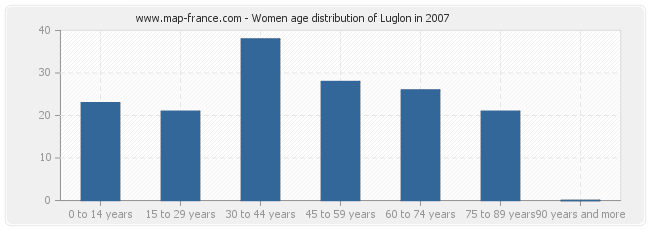 - Population of Luglon from 30 to 44 years : 69 inhabitants
