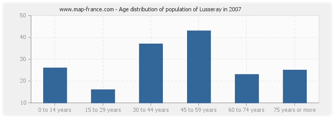 - Population of Lusseray from 45 to 59 years : 43 inhabitants