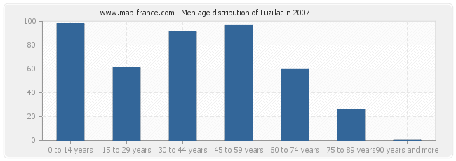 - Luzillat men inhabitants from 0 to 14 years : 98