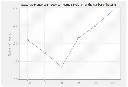 The number of housing of Luzy-sur-Marne was 138 in 2007, 130 in 1999, 123 in 1990, 107 in 1982, 115 in 1975 and 122 in 1968.