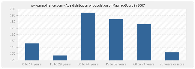 - Population of Magnac-Bourg from 30 to 44 years : 129 inhabitants
