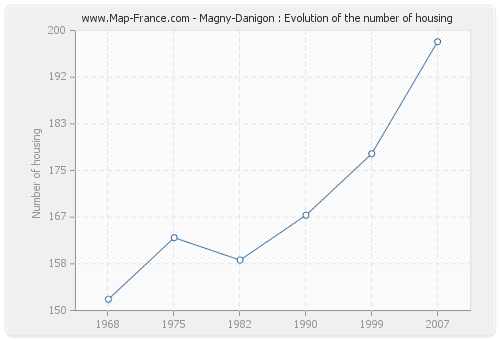 The number of housing of Magny-Danigon was 198 in 2007, 178 in 1999, 167 in 1990, 159 in 1982, 163 in 1975 and 152 in 1968.