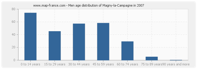 Men population distribution of Magny-la-Campagne by age in 2007 :
