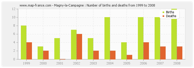 - Magny-la-Campagne in 2008 : 12 births and 3 deaths