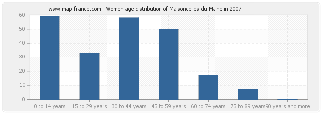 - Maisoncelles-du-Maine women inhabitants from 0 to 14 years : 59