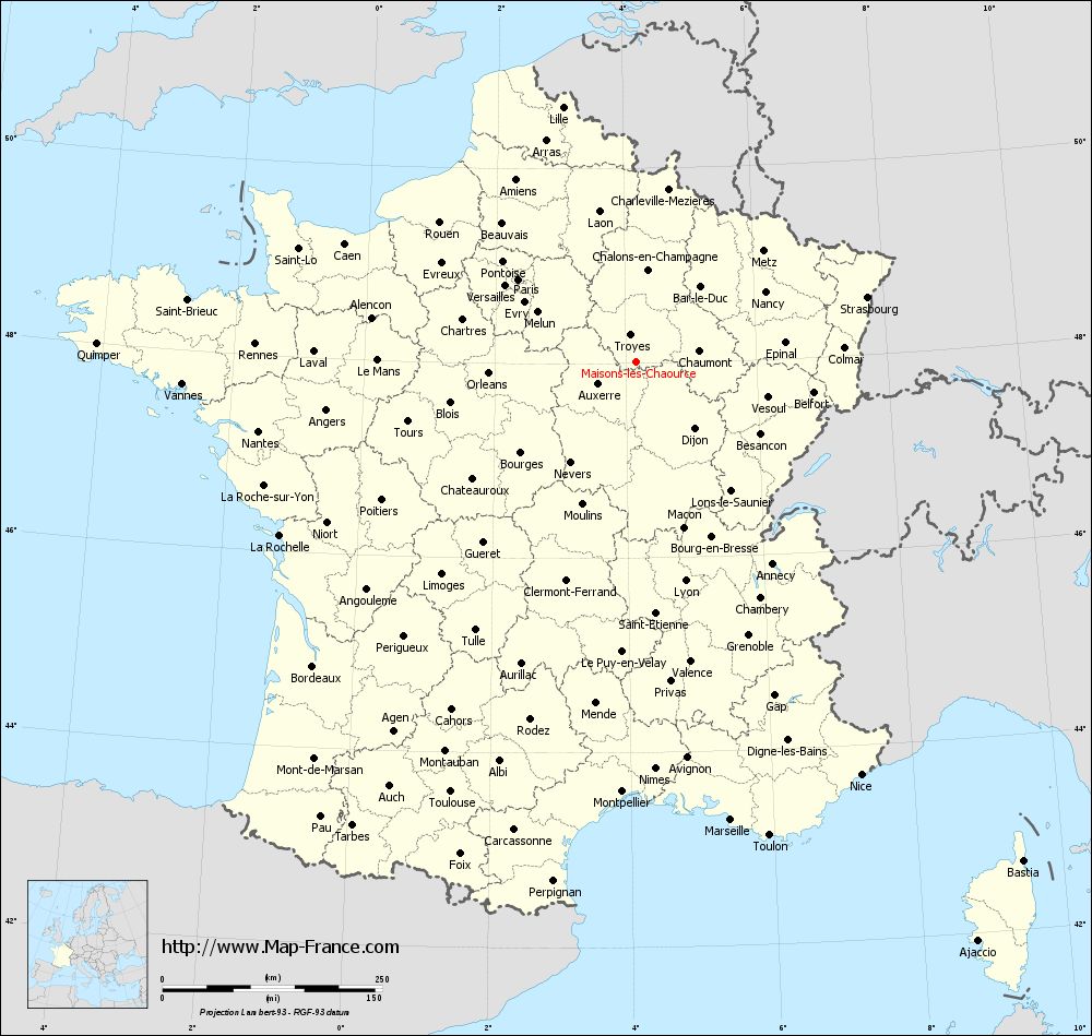 Here the distance between Maisons-lès-Chaource and the biggest cities of France: