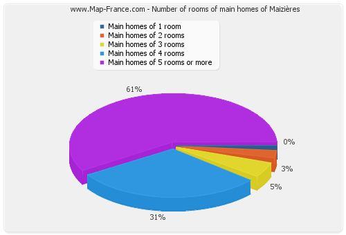 - Number of main homes of Maizières of 1 room : 0 - Number of main homes of Maizières of 2 rooms : 4 - Number of main homes of Maizières of 3 rooms : 8 - Number of main homes of Maizières of 4 rooms : 8 - Number of main homes of Maizières of 5 rooms and more : 95 |