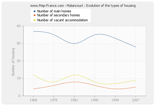 The number of housing of Malancourt was 42 in 2007, 44 in 1999, 49 in 1990, 50 in 1982, 49 in 1975 and 53 in 1968.