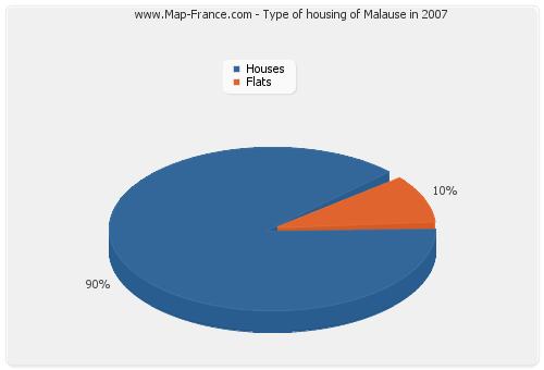 The accommodation of Malause in 2007 consisted of 388 houses and 42 flats.