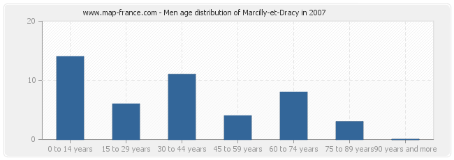 Men population distribution of Marcilly-et-Dracy by age in 2007 :
