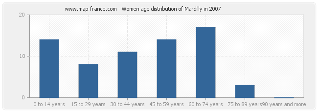 - Mardilly women inhabitants from 60 to 74 years : 17