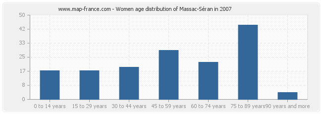 - Massac-Séran women inhabitants from 75 to 90 years : 44